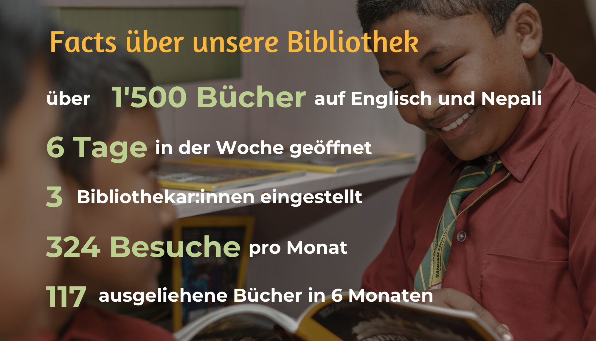 Nepal ist mit einem durchschnittlichen Tageslohn von weniger als drei Franken eines der ärmsten Ländern Asiens. Der Bildungsstand ist tief und viele abgelegene Dörfer haben erschwerten Zugang zu Informationen und Wissen. Den wenigen öffentlichen Bibliotheken fehlt es an Organisation und Büchern, die den Bedürfnissen und Interessen der Gemeinschaft entsprechen, was sich auf unseren Reisen durch Nepal nochmals verdeutlicht hat.